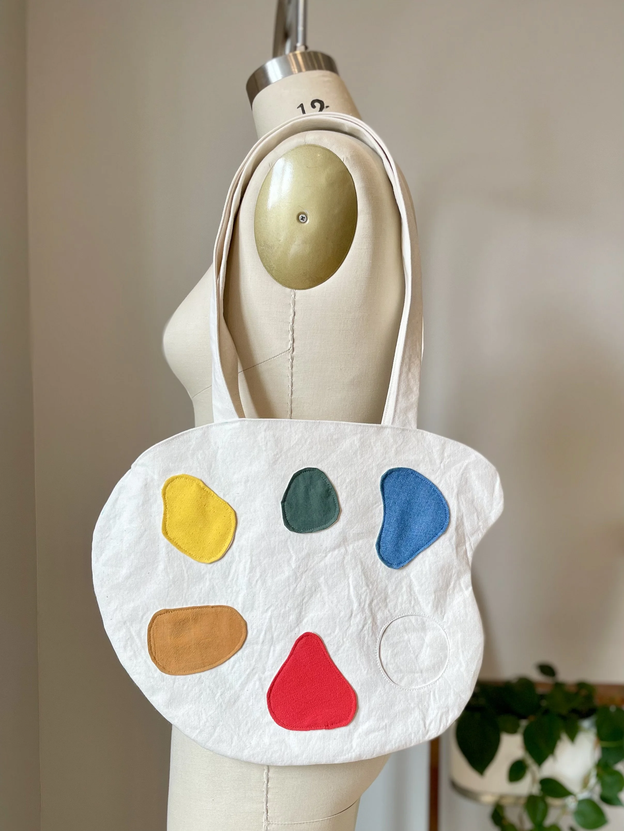 I use upcycled to mean existing clothing or secondhand material used to create something new (like this tote bag made from a vintage skirt!)